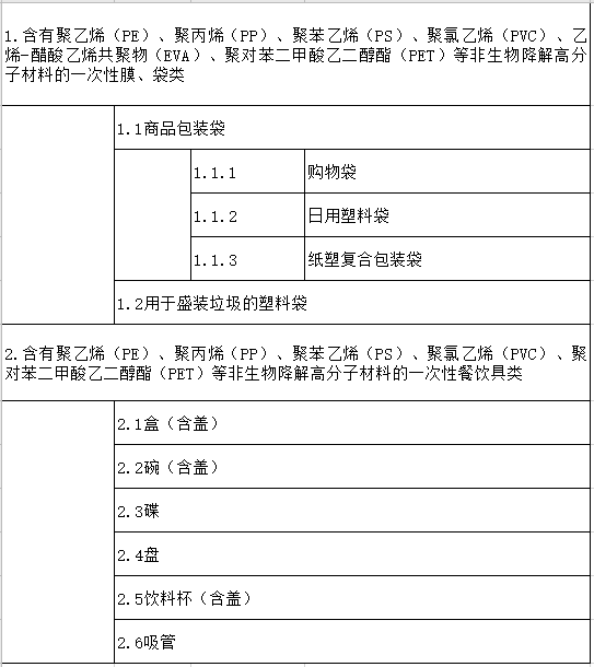 2、《海南省禁止生產銷售使用一次性 不可降解塑料制品名錄(第一批)》