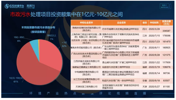 左圖為各月村鎮(zhèn)污水類項(xiàng)目釋放情況,8月釋放的村鎮(zhèn)污水類項(xiàng)目投資額最大,其次是9月份。