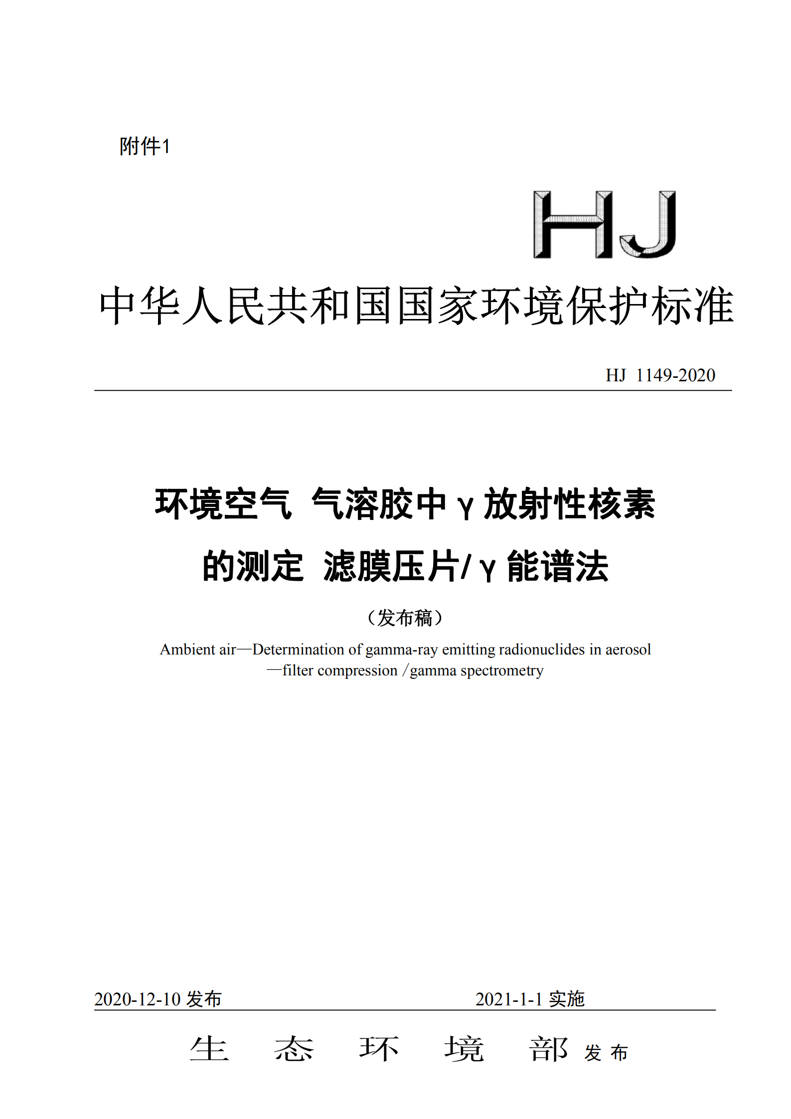 國(guó)家環(huán)境保護(hù)標(biāo)準(zhǔn)丨《環(huán)境空氣 氣溶膠中γ放射性核素的測(cè)定 濾膜壓片/γ能譜法》
