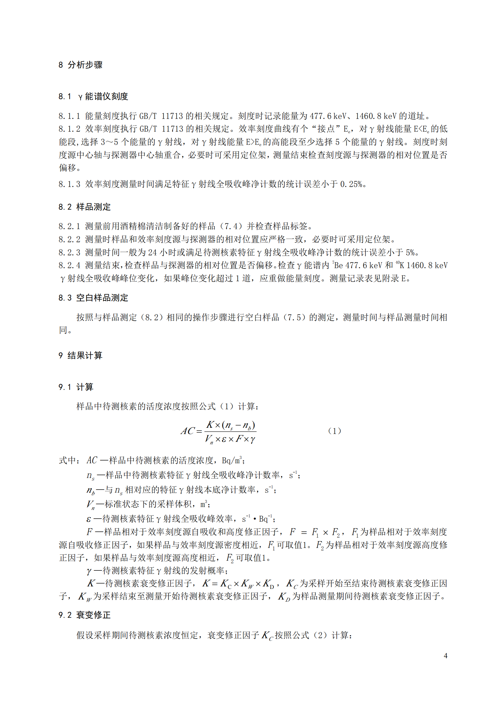 本標(biāo)準(zhǔn)規(guī)定了用濾膜壓片/γ能譜法測(cè)定環(huán)境空氣氣溶膠中γ放射性核素的方法。