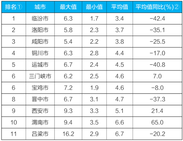 2020年11月汾渭平原11城市降塵監(jiān)測(cè)結(jié)果