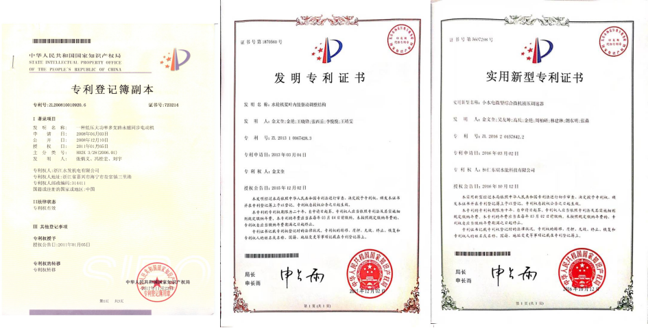 永發(fā)機(jī)電永磁同步電機(jī)專(zhuān)利證書(shū)