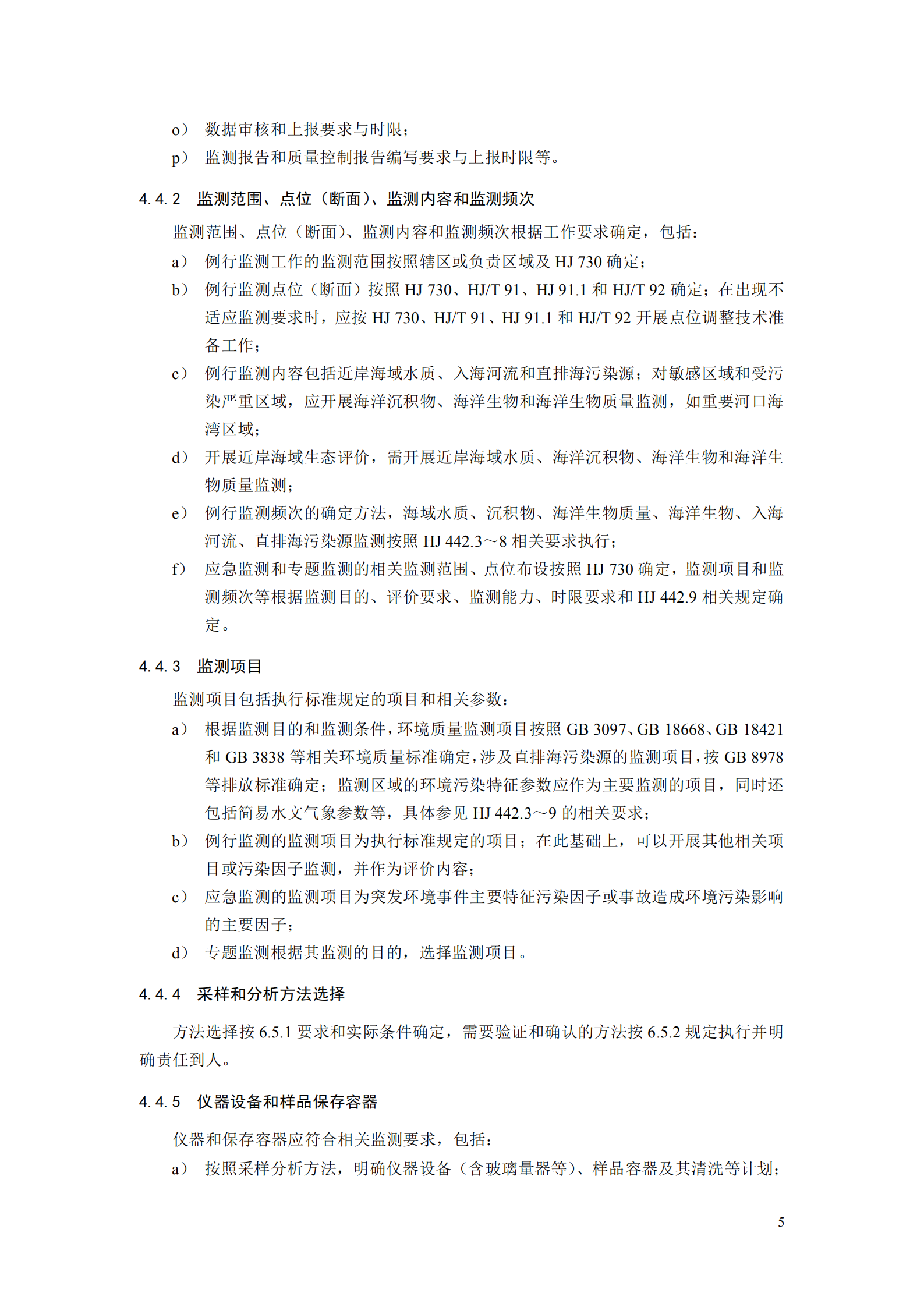 本標準作為修訂后標準的第一部分,針對監(jiān)測實施方案編制、監(jiān)測用船及安全和質(zhì)量保證和質(zhì)量控制基本要求,主要修訂以下幾方面內(nèi)容: