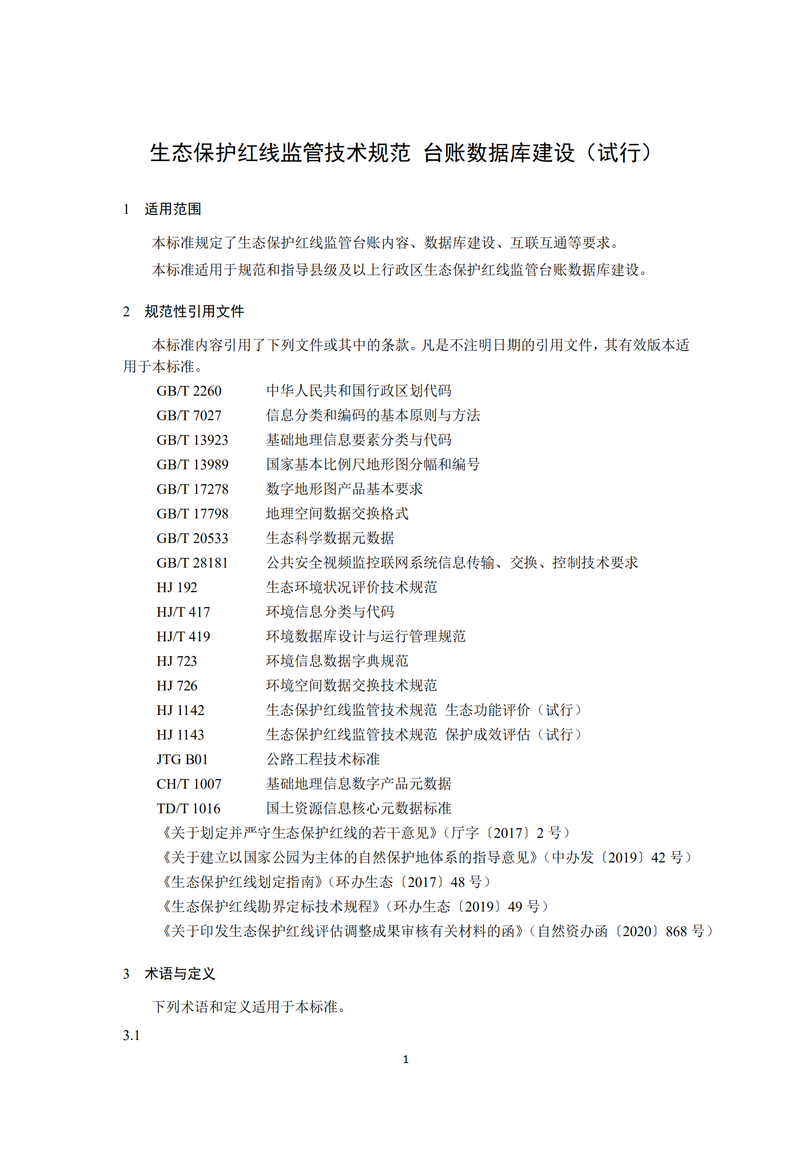 生態(tài)保護紅線監(jiān)管技術規(guī)范 臺賬數(shù)據(jù)庫建設(試行)