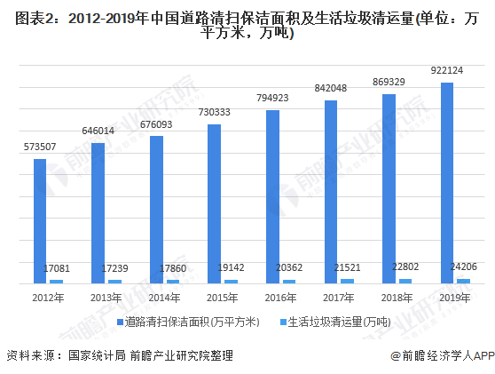 近年來,我國市政環(huán)衛(wèi)需求持續(xù)增加。根據(jù)國家統(tǒng)計局數(shù)據(jù),2019年末,我國道路清掃保潔面積約為92.21億平方米,2012-2019年年均復(fù)合增長率為7.02%;2019年我國生活垃圾清運量達到2.42億噸,2012-2019年年均復(fù)合增長率為5.11%。