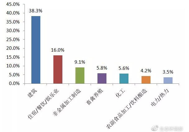從行業(yè)類型來(lái)看,11月公眾反映最集中的行業(yè)為建筑業(yè),占38.3%;其次為住宿餐飲娛樂(lè)業(yè)和非金屬加工制造業(yè),分別占16.0%和9.1%。其中,建筑業(yè)占比比10月同類占比減少2.6%;住宿餐飲娛樂(lè)業(yè)舉報(bào)占比比10月同類占比增加0.9%,非金屬加工制造業(yè)舉報(bào)占比與10月同類占比持平。