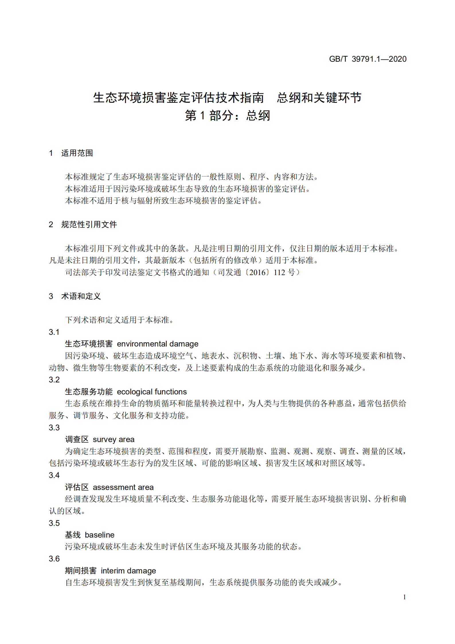 一、《生態(tài)環(huán)境損害鑒定評估技術(shù)指南 總綱和關(guān)鍵環(huán)節(jié) 第1部分:總綱》(GB/T 39791.1-2020)