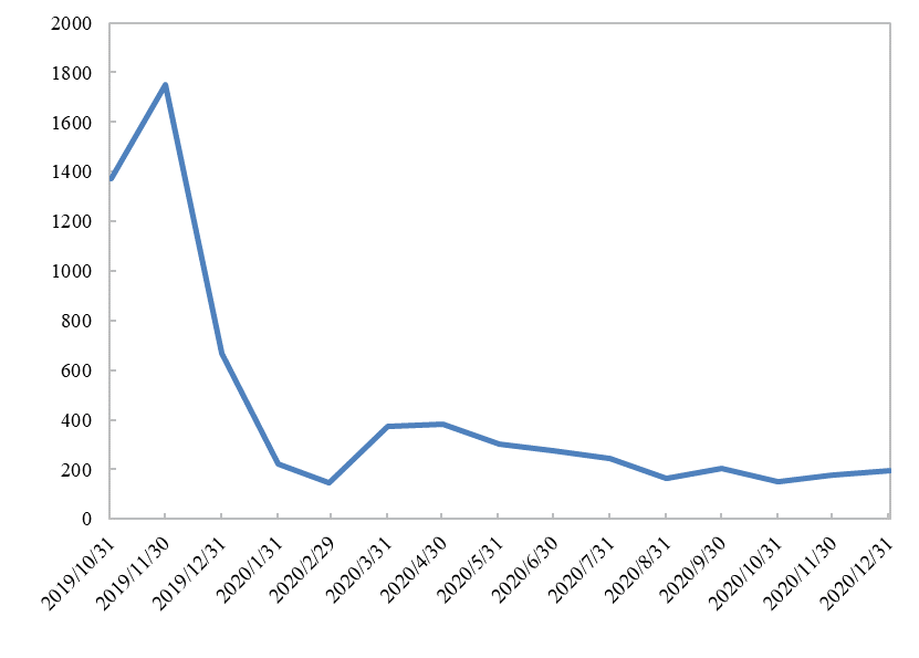 環(huán)評信用平臺(tái)2019年11月啟用以來,最初的幾個(gè)月登記注冊的環(huán)評編制單位數(shù)量較多,從2020年1月以后,每個(gè)月新登記的數(shù)量逐步平穩(wěn),基本穩(wěn)定在200家左右,詳見圖2。