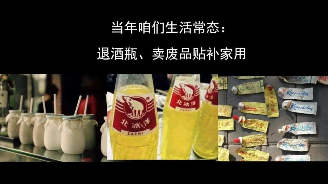 像我們六十年代出生的人,小的時候,牙膏皮可以換錢;我們浙江人家里宰了雞,雞毛可以去換糖;我剛開始到北京讀書的時候,喝酸奶,酸奶瓶有押金,還回去,把錢還給你。