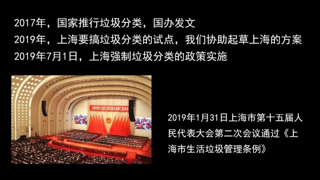 2016年12月21日,總書記親自主持召開中央財經領導小組會,他把垃圾分類和房價、和社保作為關系到民生的六大問題來提出;2017年國辦就發(fā)文;上海在2019年的7月1日,就根據(jù)立法先行的原則進行強制的垃圾分類。