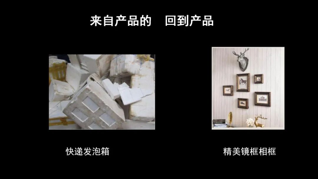 第二句話叫做:來自產品,要回到產品。你看我們從石油做成石油聚合物,做成發(fā)泡箱,我們把發(fā)泡箱按照物質不滅定律,把它做成漂亮的鏡框、相框,繼續(xù)為大家服務。