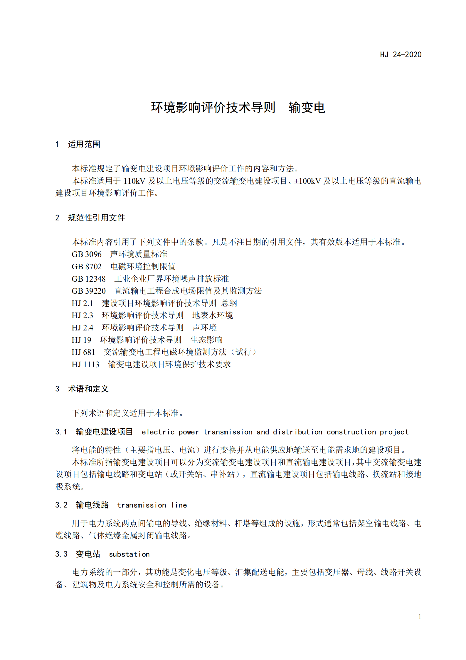 本標(biāo)準(zhǔn)規(guī)定了輸變電建設(shè)項(xiàng)目環(huán)境影響評(píng)價(jià)的內(nèi)容、方法等技術(shù)要求。 本標(biāo)準(zhǔn)是對(duì)《環(huán)境影響評(píng)價(jià)技術(shù)導(dǎo)則 輸變電工程》(HJ 24-2014)的修訂。