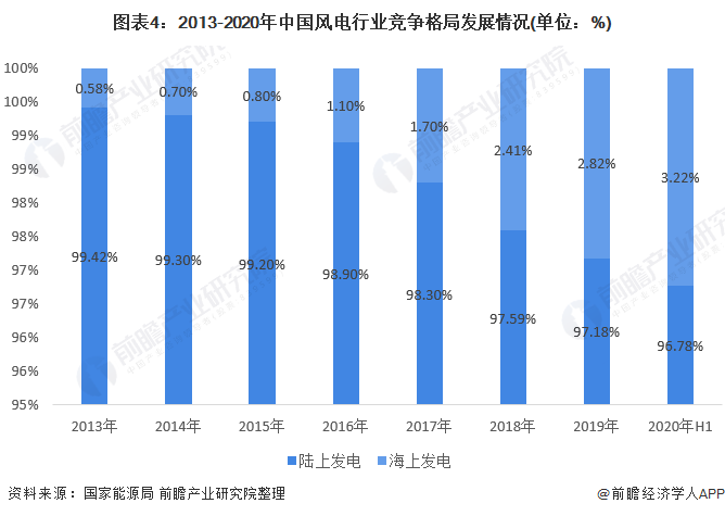 中國(guó)風(fēng)電行業(yè)細(xì)分格局:海上風(fēng)電份額逐漸提升