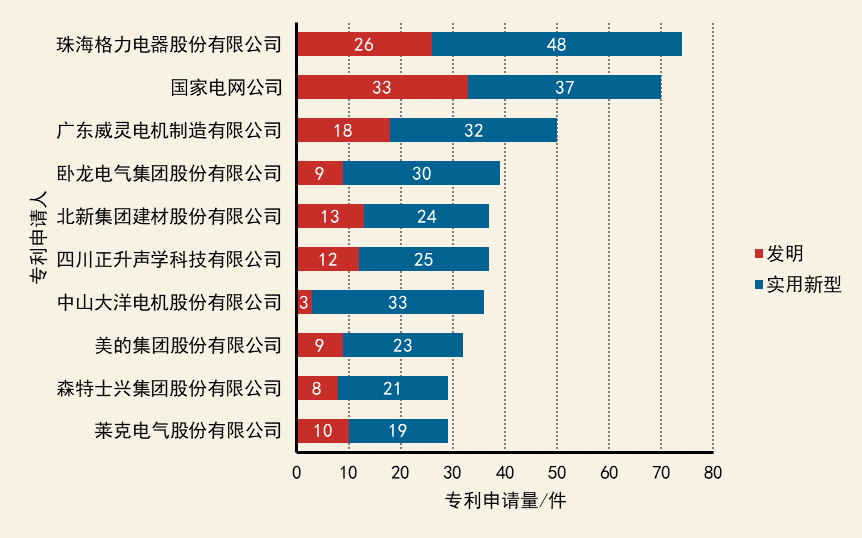 中國企業(yè)在該技術(shù)領(lǐng)域?qū)@暾?qǐng)以實(shí)用新型為主,大部分企業(yè)實(shí)用新型專利申請(qǐng)量占比60%以上,企業(yè)類型集中于電氣企業(yè),以機(jī)械噪聲控制居多。