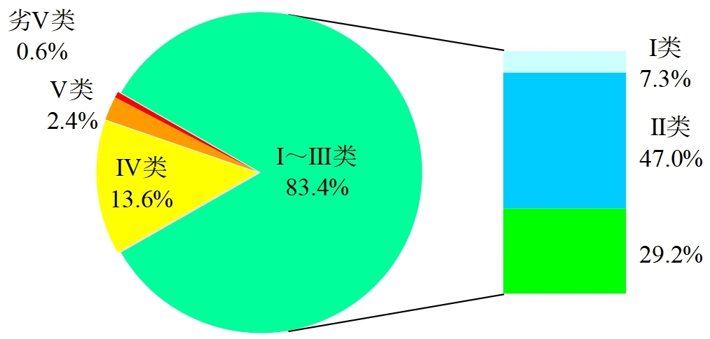 圖2 2020年1-12月全國地表水水質(zhì)類別比例