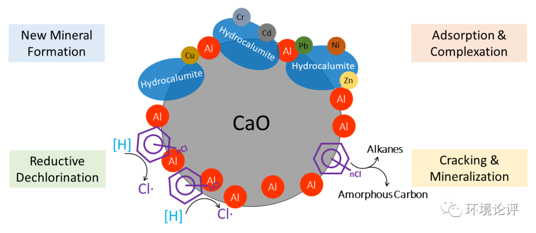 綜上,此種n-Al/CaO反應(yīng)型固化穩(wěn)定化材料在飛灰的重金屬強(qiáng)化固定與二噁英類毒性有機(jī)物同步去除領(lǐng)域有巨大潛力,對其作用機(jī)理仍待進(jìn)一步深入探索。