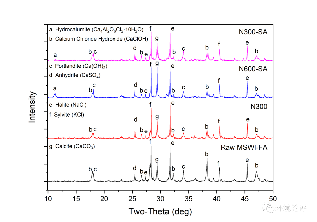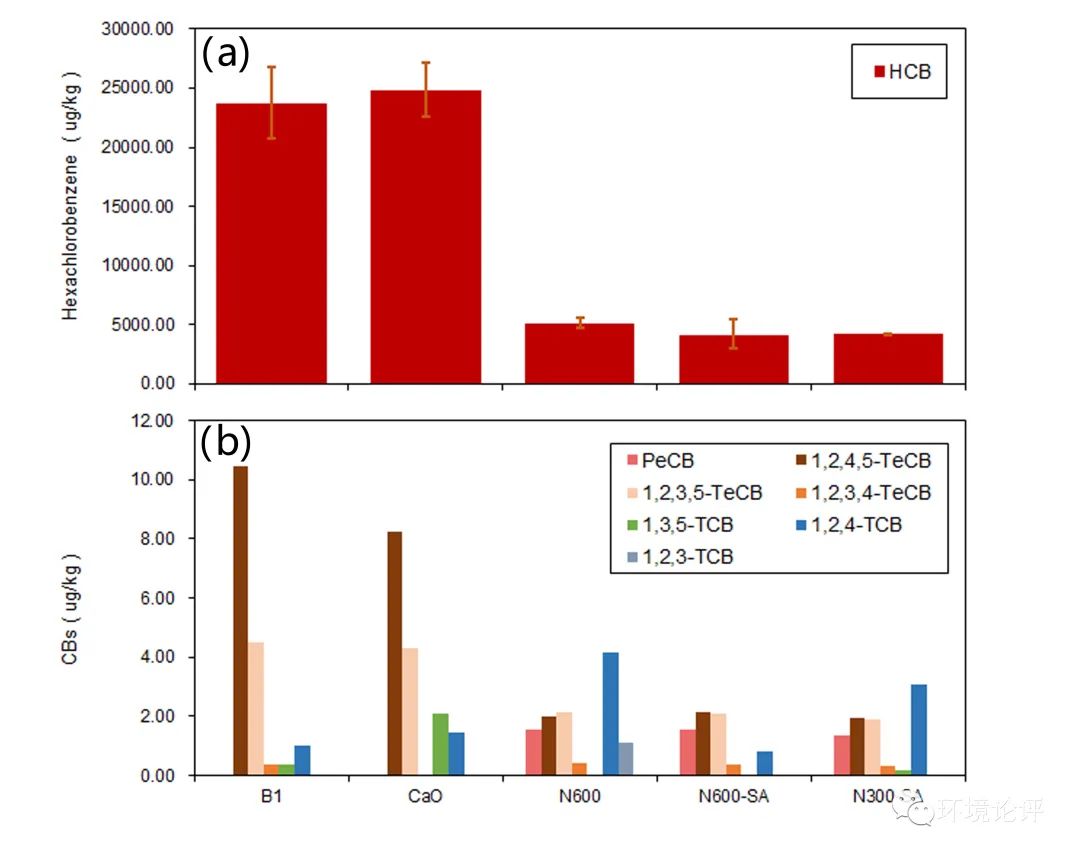 將n-Al/CaO材料應(yīng)用于生活垃圾焚燒飛灰的固化穩(wěn)定化過程中,以10%質(zhì)量比的添加量即可獲得較好的處理效果。在實(shí)驗條件下,重金屬的浸出濃度均可低于填埋場入場標(biāo)準(zhǔn),固定率達(dá)到99.9%,以N600SA實(shí)驗組為最佳。在此過程中反應(yīng)體系中新生成水鋁鈣石類礦物,強(qiáng)化重金屬固定。經(jīng)n-Al/CaO固化穩(wěn)定化后氯苯類物質(zhì)的總含量顯著降低,82.43%的六氯苯得到降解去除,未產(chǎn)生其他氯苯類物質(zhì)的積累。