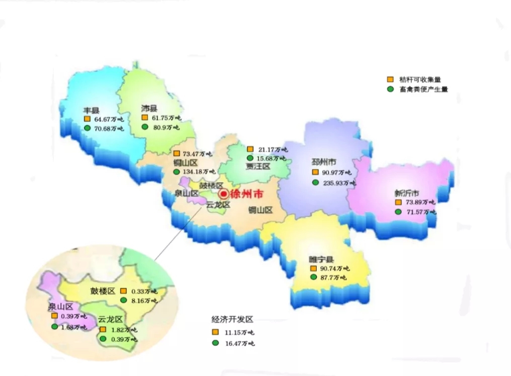 因地制宜科學(xué)布局。徐州市合理安排秸稈還田和秸稈離田利用范圍,從空間上對秸稈收儲(chǔ)企業(yè)進(jìn)行合理布局。目前,徐州市主城區(qū)(含云龍區(qū)、鼓樓區(qū)、泉山區(qū)、經(jīng)濟(jì)開發(fā)區(qū))以及銅山區(qū)重點(diǎn)安排秸稈還田任務(wù),而距離終端企業(yè)較近、有離田利用需求較多的沛縣、睢寧縣、邳州市重點(diǎn)發(fā)展秸稈收儲(chǔ)運(yùn)企業(yè)。
