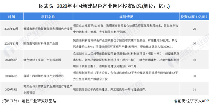 目前,綠色產(chǎn)業(yè)園區(qū)的建設(shè)仍以對(duì)原有產(chǎn)業(yè)園區(qū)綠色化轉(zhuǎn)型為主,值得注意的是,新建綠色產(chǎn)業(yè)園區(qū)的投資也在不斷增長,2020年我國新建綠色產(chǎn)業(yè)園投資動(dòng)態(tài)如下: