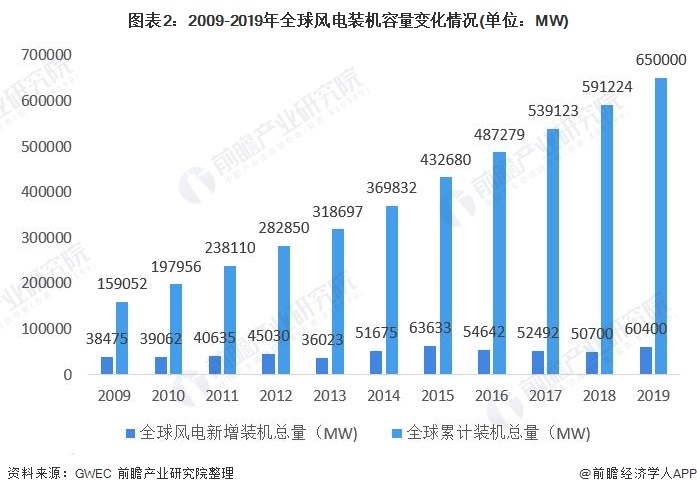 風(fēng)能作為一種新型的綠色能源,在全球能源結(jié)構(gòu)中逐漸占據(jù)重要地位。目前,利用風(fēng)力發(fā)電已逐漸成為風(fēng)能利用的主要形式,利用風(fēng)力發(fā)電非常環(huán)保,且風(fēng)能資源總量巨大,因此日益受到世界各國(guó)的重視。近年來(lái),全球風(fēng)電市場(chǎng)穩(wěn)定發(fā)展。