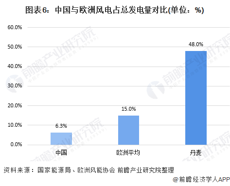 雖然已經(jīng)提前達到了國家能源局發(fā)布的《風電發(fā)展“十三五”規(guī)劃》提出的到2020年底我國風電占比要達到6%的發(fā)展目標,但與歐洲相比仍然具有較大的差距,我國風電開發(fā)程度仍有較大的提升空間。