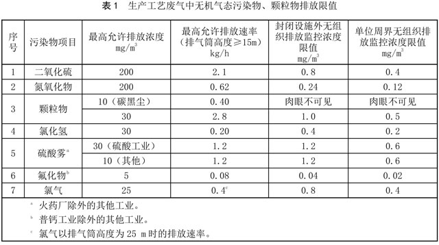 5.2.1 生產(chǎn)工藝廢氣中無機(jī)氣態(tài)污染物、顆粒物按表1的規(guī)定執(zhí)行。