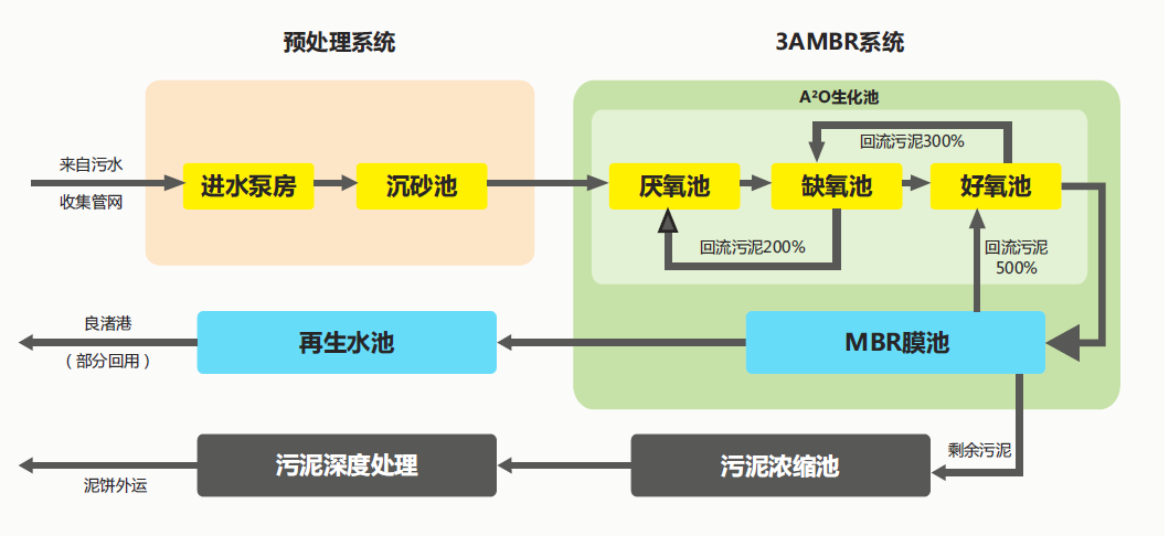 浙江省杭州市良渚污水處理廠三期工程的深度處理單元設(shè)計規(guī)模3.0萬m³/d,處理工藝為天創(chuàng)環(huán)境自主研發(fā)的高效膜生物反應器(MBR)集成技術(shù)。