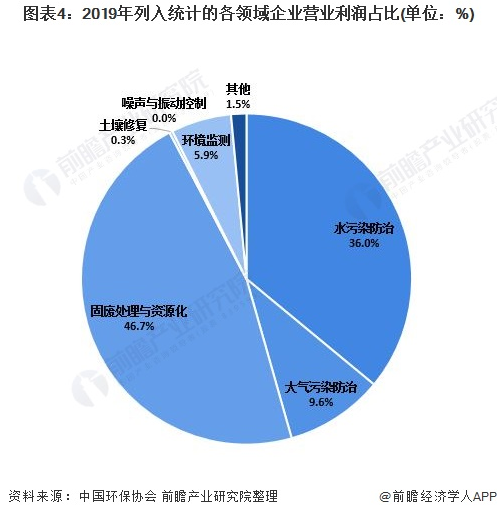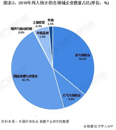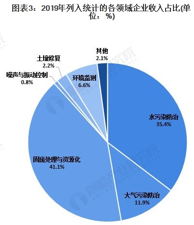 在我國環(huán)保產(chǎn)業(yè)企業(yè)中,水污染防治、環(huán)境監(jiān)測領(lǐng)域企業(yè)數(shù)量占比較高;水污染防治、固廢處置與資源化、大氣污染防治3個領(lǐng)域企業(yè)的營業(yè)收入占比居前列,3個領(lǐng)域企業(yè)營業(yè)收入之和占比高達88.4%。