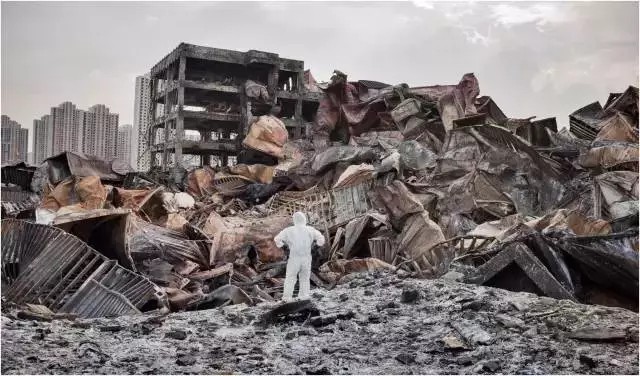 為照顧當(dāng)?shù)氐膭游镆廊蛔≡诟u的中村先生這個是在福島目前生活的唯一的日本人——中村先生,他是全世界輻射量最高的人之一。可能比不了切爾諾貝利,但他是日本最高的。我為了取得他的信任,跟他住了兩天,通過手機免提翻譯來采訪他。他非常信任我,他告訴我說你在我這沒有問題,但如果你被核輻射以后的所有后果我不承擔(dān)責(zé)任。這個老人現(xiàn)在一直在日本這個地方照顧動物,我看到他跟動物在一起的時候,我覺得他跟動物那種情感、那種自然是無與倫比的。當(dāng)然作為記者,我們有很多不能言說的東西,有很多報道的禁區(qū),我們是怎么去應(yīng)對的呢?天津大爆炸這張照片大家可能知道,(獲得了)今年的荷賽獎,包括一些國內(nèi)的大獎。這是我第三天去拍的一張照片。