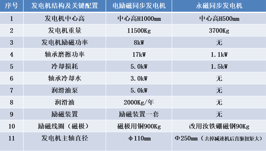 據(jù)悉,此次改造11臺套發(fā)電機(jī)組,共計投資900萬元。由于減少齒輪箱、減少勵磁裝置、減少油泵等,永磁發(fā)電機(jī)與電勵磁發(fā)電機(jī)比較節(jié)省改造費用400萬元,年減少運行費用100余萬,大約3年即可收回投資。項目改造還減少了廢機(jī)油處理,實現(xiàn)環(huán)保、綠色、節(jié)能和安全可靠運行,符合國家產(chǎn)業(yè)政策。