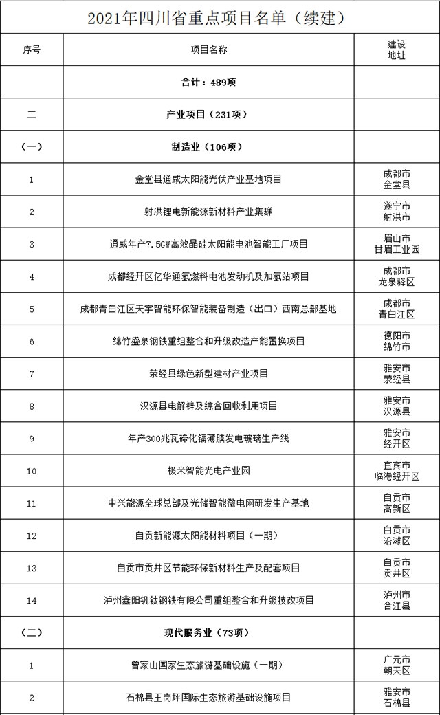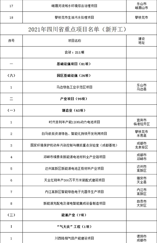 2021年1月27日,四川省發(fā)改委公布了本年度重點(diǎn)項(xiàng)目名單,續(xù)建的489項(xiàng),新開(kāi)工的211項(xiàng)。