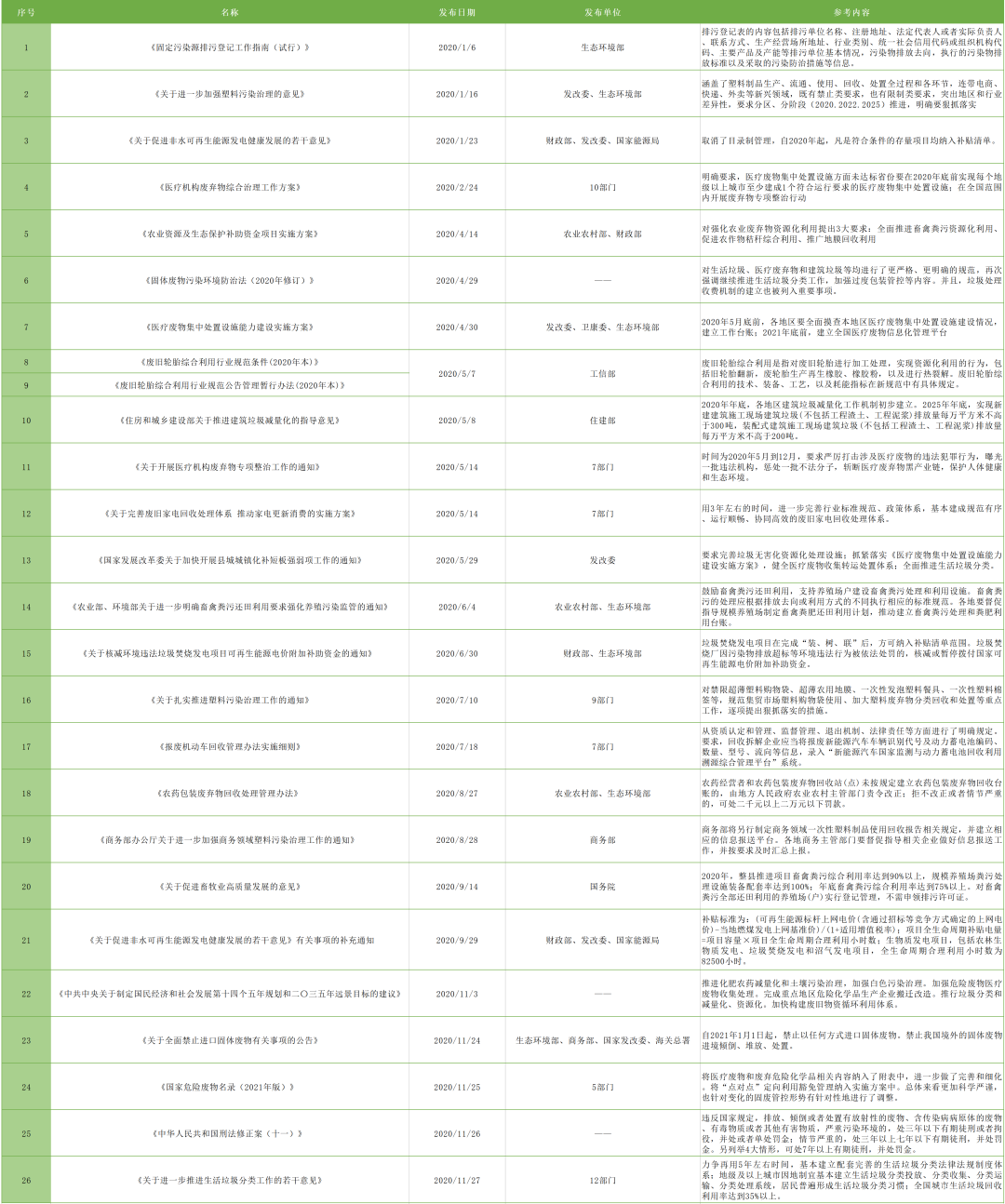 與此同時,各項工作為2020年,以及“十三五”固體廢棄物污染治理畫上了“各自完滿”的句點。