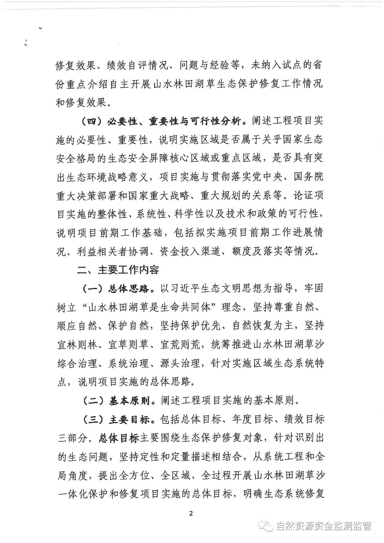 財(cái)政部辦公廳 自然資源部辦公廳 生態(tài)環(huán)境部辦公廳關(guān)于組織申報(bào)中央財(cái)政支持山水林田湖草沙一體化保護(hù)和修復(fù)工程項(xiàng)目的通知
