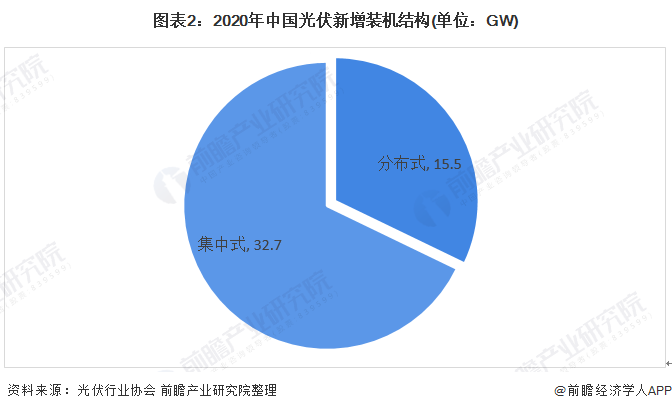 2020年我國(guó)光伏新增裝機(jī)中集中式裝機(jī)32.7GW