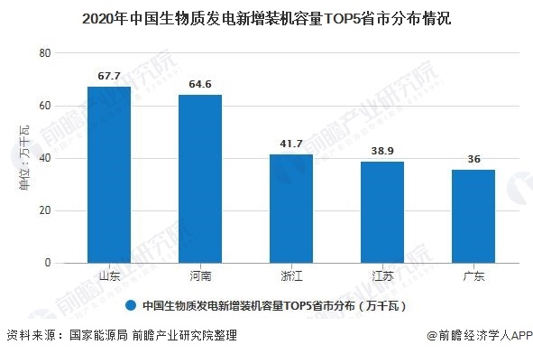 2020年底,新增裝機較多的省份是山東、河南、浙江、江蘇和廣東,分別為67.7萬千瓦、64.6萬千瓦、41.7萬千瓦、38.9萬千瓦和36.0萬千瓦。