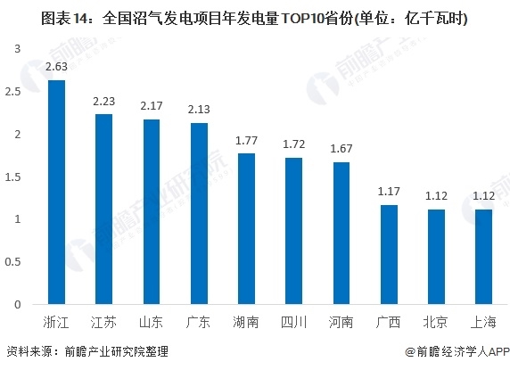發(fā)電量前十省份為浙江、廣東、江蘇、山東、安徽、福建、四川、上海、湖南、北京,總發(fā)電量為378 億千瓦時,約占全國發(fā)電量的78%。