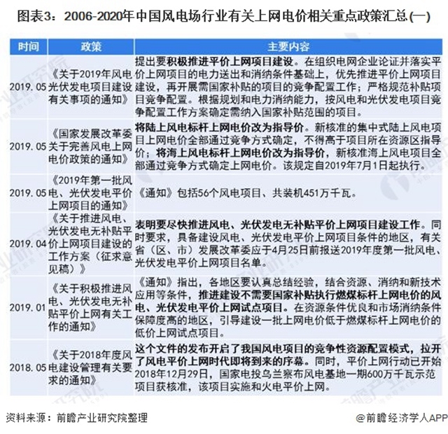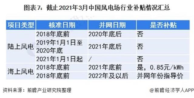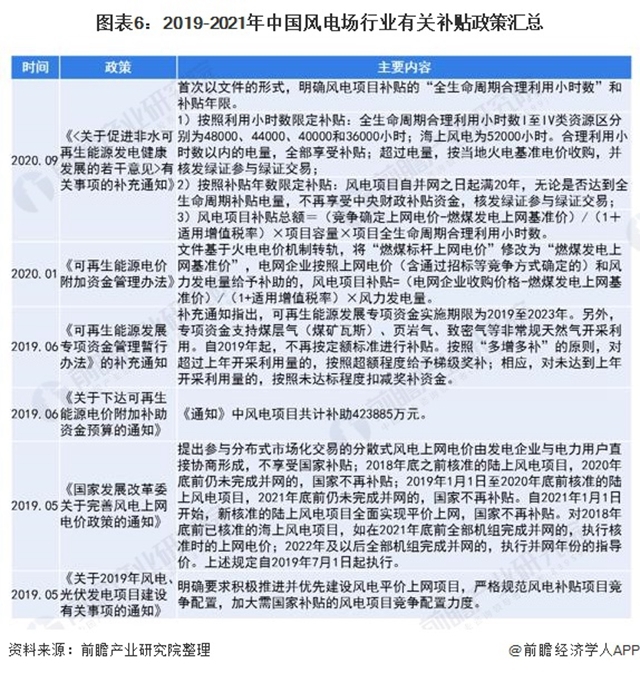 目前,我國風(fēng)電場行業(yè)的最新補(bǔ)貼規(guī)定依據(jù)2019年5月發(fā)布的《國家發(fā)展改革委關(guān)于完善風(fēng)電上網(wǎng)電價政策的通知》進(jìn)行:2018年底之前核準(zhǔn)的陸上風(fēng)電項目,2020年底前仍未完成并網(wǎng)的,國家不再補(bǔ)貼;2019年1月1日至2020年底前核準(zhǔn)的陸上風(fēng)電項目,2021年底前仍未完成并網(wǎng)的,國家不再補(bǔ)貼。自2021年1月1日開始,新核準(zhǔn)的陸上風(fēng)電項目不再享受補(bǔ)貼優(yōu)惠。