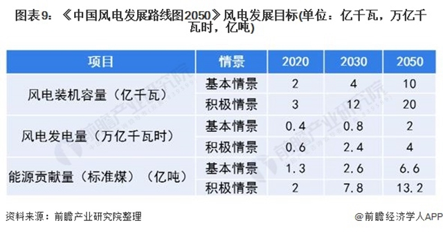 早在2011年,我國便提出了未來風(fēng)電的40年發(fā)展目標(biāo)及規(guī)劃《中國風(fēng)電發(fā)展路線圖2050》,規(guī)劃在基本情景下,到2020年、2030年和2050年,風(fēng)電裝機(jī)容量將分別達(dá)到2億、4億和10億千瓦,在2050年,風(fēng)電將滿足17%的國內(nèi)電力需求。