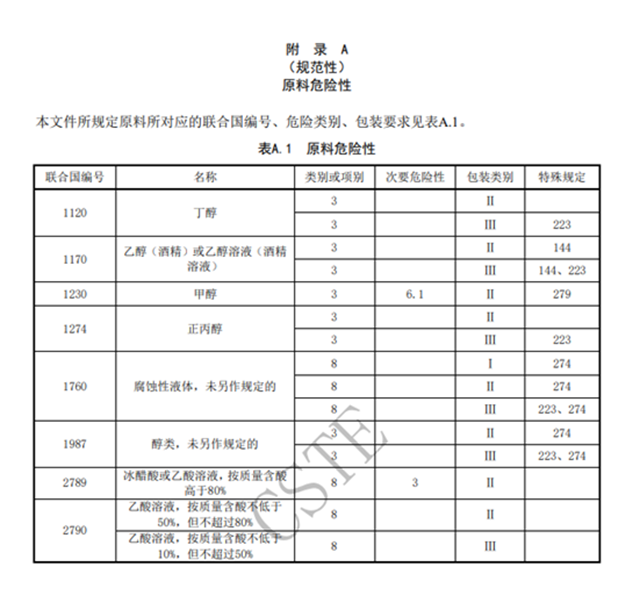 本文件所規(guī)定原料所對應(yīng)的聯(lián)合國編號、危險(xiǎn)類別、包裝要求見表A.1。
