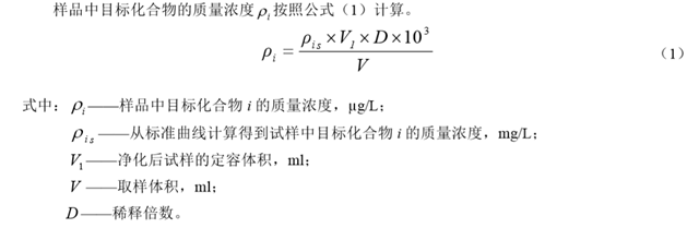 按照與標準曲線的建立(8.2)相同的條件對凈化后的試樣(7.2.2或7.2.3)進行測定。當水樣 的濃度超出標準曲線的線性范圍時,應減少取樣量或稀釋洗脫液后,再進行測定。