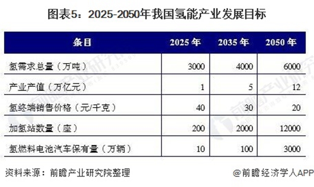 2050年氫的終端銷售價(jià)格將降至20元/kg,加氫站數(shù)量達(dá)到12000座,氫燃料電池汽車保有量達(dá)到3000萬輛,固定式發(fā)電裝置2萬臺(tái)套/年,燃料電池系統(tǒng)產(chǎn)能550萬臺(tái)套/年,全國(guó)將進(jìn)入氫能社會(huì)。