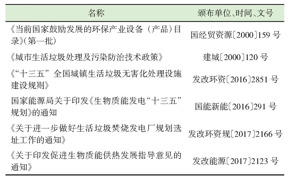 表3 垃圾焚燒發(fā)電行業(yè)規(guī)劃建設(shè)類重點政策