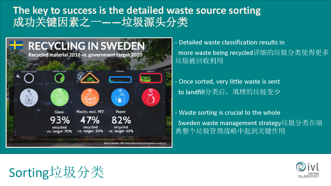 剛才講的是瑞典,我們也統(tǒng)計(jì)過(guò)整個(gè)北歐,像丹麥、挪威、芬蘭等等各個(gè)國(guó)家,它的分布也差不多,整體來(lái)說(shuō),據(jù)我們統(tǒng)計(jì),北歐在垃圾管理這個(gè)行業(yè)里處于全球比較領(lǐng)先的地位。它是遠(yuǎn)遠(yuǎn)高于歐盟的平均水平,這也是我們現(xiàn)在為什么想做這件事,想把北歐好的一些經(jīng)驗(yàn)引進(jìn)到中國(guó)來(lái),促進(jìn)中國(guó)的垃圾管理水平提升。經(jīng)過(guò)我們的思考,有四個(gè)方面的借鑒。