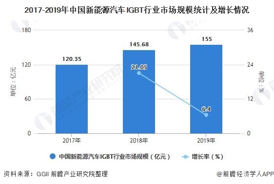 高工產(chǎn)研電動(dòng)車研究所數(shù)據(jù)(GGII)顯示,2019年我國新能源汽車IGBT市場(chǎng)規(guī)模達(dá)到155億元,同比增長6.40%,增速為近年的新低。GGII預(yù)計(jì),隨著市場(chǎng)的逐步回調(diào),到2020年,我國新能源汽車和充電樁市場(chǎng)將帶動(dòng)近兩百億IGBT模塊的需求。