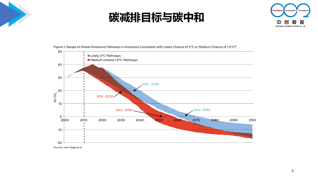 現(xiàn)在國際上比較通行的有兩個(gè)溫升的限制,到本世紀(jì)末的時(shí)候,應(yīng)該把我們?nèi)虻臏厣刂圃趦啥然蛘?.5度以內(nèi),兩度對人類的影響是比較可控的,1.5度會(huì)大大的減少氣候變化對人類的影響。經(jīng)過科學(xué)家的研究,如果兩度的話,我們?nèi)驊?yīng)該在2065年左右要達(dá)到近零排放,也就是碳中和。如果達(dá)到1.5度,就要在2050年達(dá)到碳中和,現(xiàn)在世界上很多國家基本上都是說我們在2050年或者2060年達(dá)到碳中和。