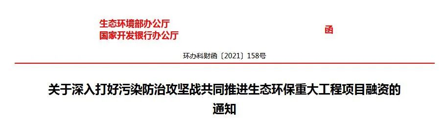 為深入貫徹落實(shí)黨中央、國(guó)務(wù)院關(guān)于推進(jìn)生態(tài)文明建設(shè)、全面加強(qiáng)生態(tài)環(huán)境保護(hù)、深入打好污染防治攻堅(jiān)戰(zhàn)的決策部署,推進(jìn)生態(tài)環(huán)境治理體系和治理能力現(xiàn)代化,生態(tài)環(huán)境部、國(guó)家開(kāi)發(fā)銀行簽署《關(guān)于深入打好污染防治攻堅(jiān)戰(zhàn) 共同推進(jìn)生態(tài)環(huán)保重大工程項(xiàng)目融資合作備忘錄》,發(fā)揮部行合作優(yōu)勢(shì),共同加大生態(tài)環(huán)保重大工程項(xiàng)目融資,培育環(huán)保產(chǎn)業(yè)新增長(zhǎng)點(diǎn)?,F(xiàn)將有關(guān)事項(xiàng)通知如下: