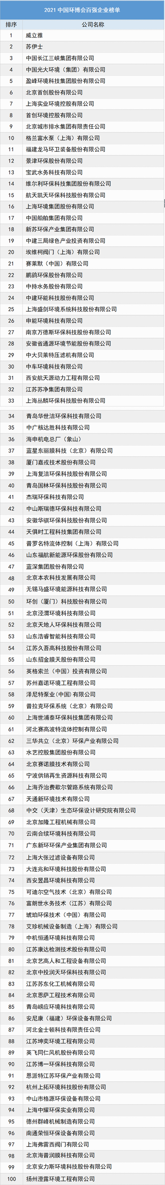 2021中國環(huán)博會(huì)百強(qiáng)榜單
