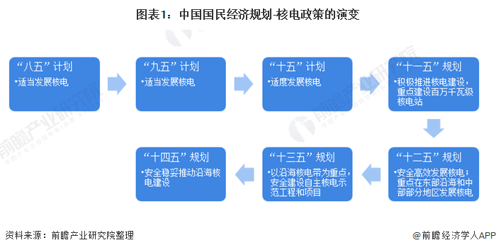 核電是我國(guó)能源供應(yīng)體系的重要分支,也是新能源的重要組成部分。根據(jù)我國(guó)國(guó)民經(jīng)濟(jì)“八五”計(jì)劃至“十四五”規(guī)劃,國(guó)家對(duì)核電行業(yè)的支持政策經(jīng)歷了從“適當(dāng)發(fā)展”到“積極推進(jìn)發(fā)展”再到“安全穩(wěn)妥發(fā)展”的變化。
