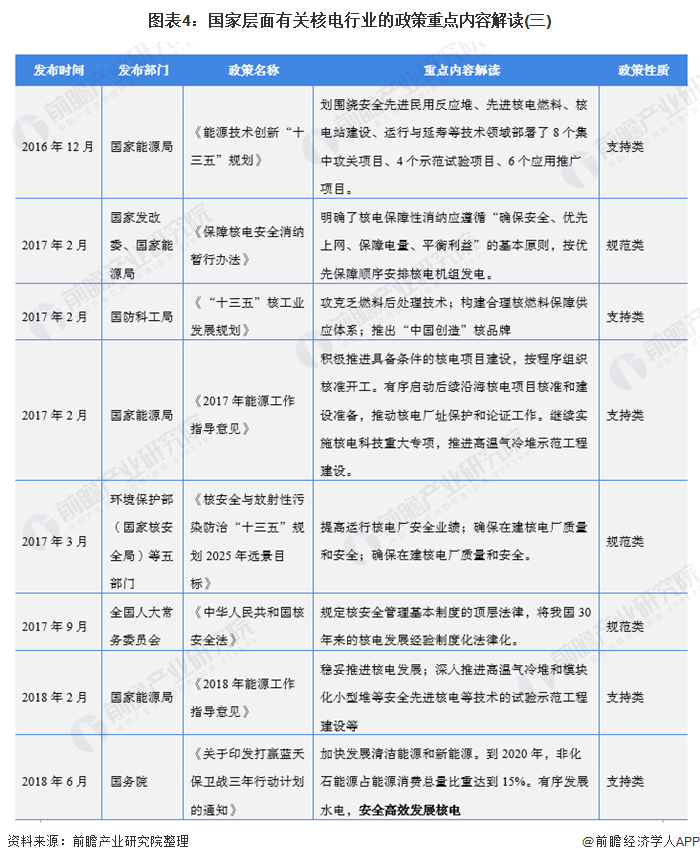 自2007年以來(lái),國(guó)務(wù)院、國(guó)家發(fā)改委、國(guó)家能源局等多部門都陸續(xù)印發(fā)了支持、規(guī)范核電行業(yè)的發(fā)展政策,內(nèi)容涉及核電發(fā)展技術(shù)路線、核電廠建設(shè)規(guī)范、核電廠安全運(yùn)行規(guī)范、上網(wǎng)電價(jià)政策等內(nèi)容: