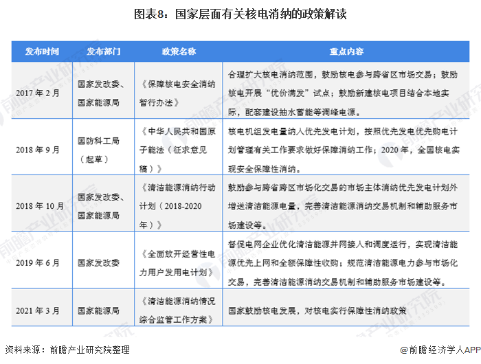在核電消納方面,“十三五”以來(lái),國(guó)家發(fā)改委、國(guó)家能源局等相關(guān)部門也陸續(xù)出臺(tái)相關(guān)政策推進(jìn)核電消納工作,具體內(nèi)容包括擴(kuò)大核電消納范圍、實(shí)行保障性消納政策等。